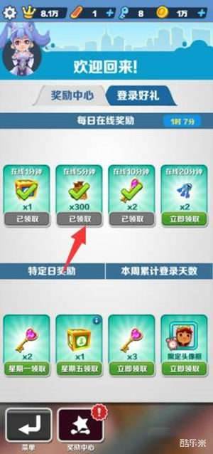 2、每天在线时间达到一定时长后,就可以免费领取金币奖励了。