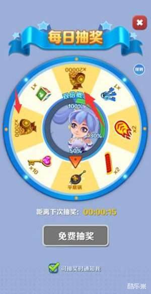 2、每天都可以免费抽转盘,而且抽中金币的概率很高。