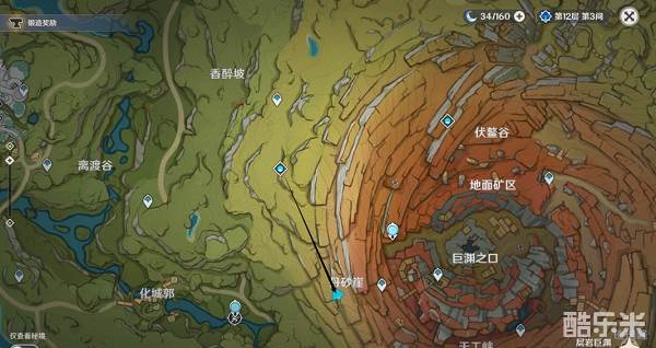 1.来到缘觉塔副本,向东南方向层岩巨渊的丹砂崖方向,一路向下走;