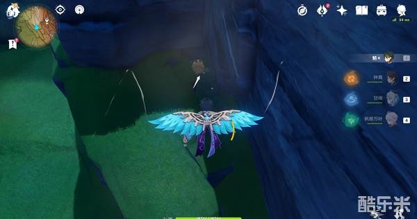 2.走到差不多位置,派蒙会出现提示,随机向下飞可以看到山体间的驮兽;