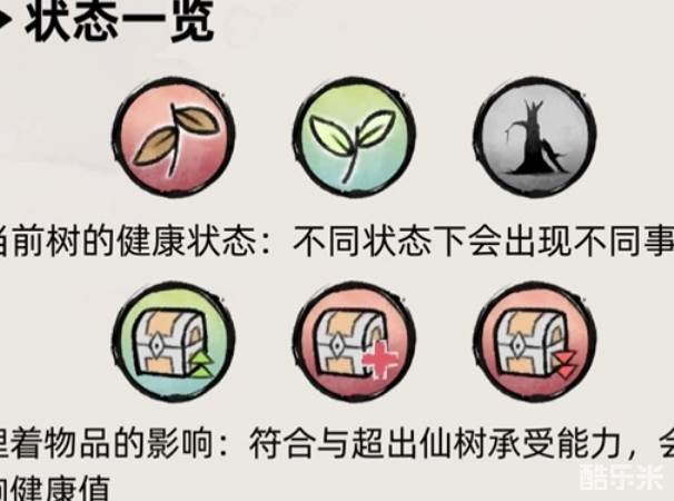 埋着物品的影响:符合与超出仙树承受能力,会影响健康值。