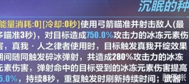 无条件提升自身冰元素伤害,真我·人之律者装备时,在爆发状态下的蓄力攻击命中敌人后会进一步提高终结技伤害。