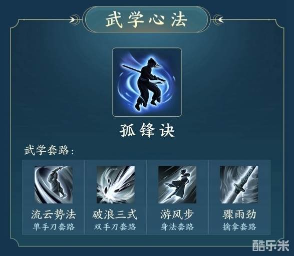 游风步:主为身法类招式的套路,该套路下刀宗拥有极强的移动能力和生存能力,在追击目标和逃离战场的选择中游刃有余。