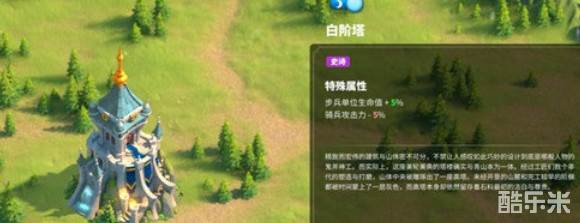 在万国觉醒中白阶塔只能通过琉森古卷来获得到,这个建筑是史诗的品质能够增加步兵单位的生命数值,减少骑兵的攻击能力。