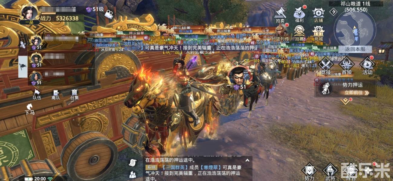 参与势力押运活动,即有机会获得随机金将碎片、势力币、功勋、势力名望等大量奖励。