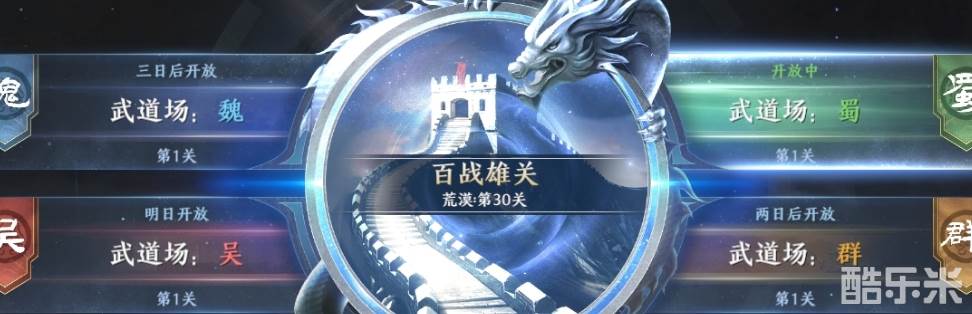 将军在通关8-2东岭斩敌,同时通关【百战雄关】长城:第55关后,将开启四国武道场玩法。
