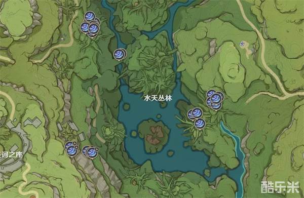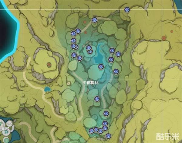 1:首先就是在护世森这里有非常多的树王圣体菇,具体的分布位置如图所示;
