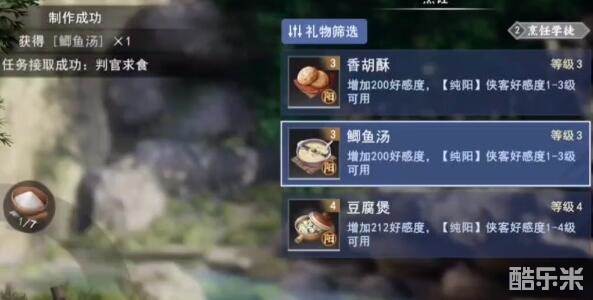 3、我们需要现场做一份鲫鱼汤,或者是找升云阁的厨娘帮我们玩家做一份,如图所示。