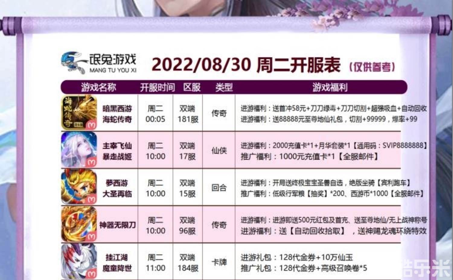 | 怒斩屠龙-福利版 | 111区( 苹果- 安卓) | 2022-08-30 13:00:00 |