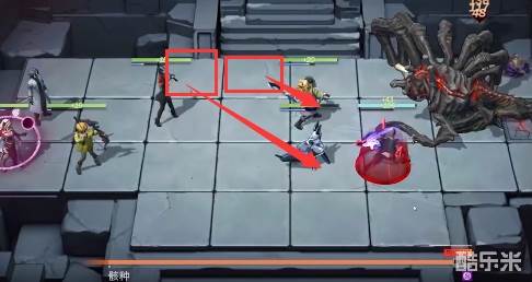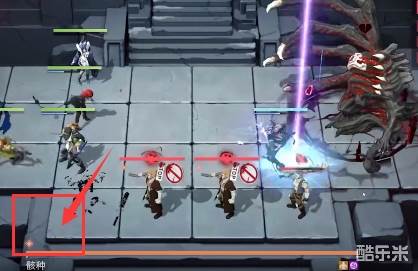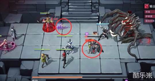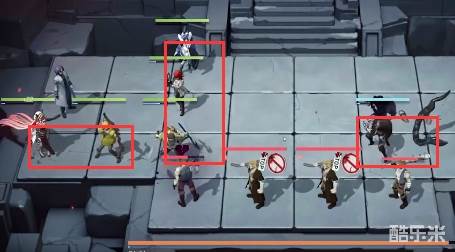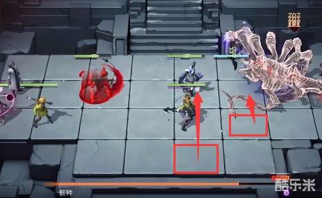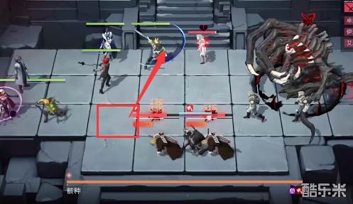 1、站位如图所示,前方放置防御角色和战士,后方放置远程输出,先放在左侧把左侧的怪清掉。