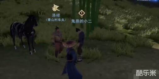 2、我们会在这里找到一个叫洛祥的车夫,在他的边上就是接这个任务的npc叫鬼祟的小二。