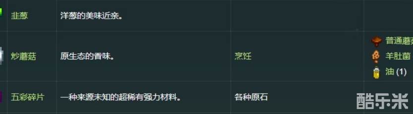 所有烹饪美食(除了炒蘑菇、魔法糖冰棍、蒜油、奇怪的小面包、海泡布丁、荷包蛋、面包)