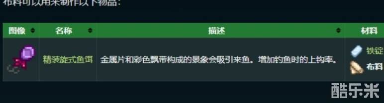 布料(Cloth)是一种用织布机制作而成的工匠物品,制作时间为4小时。