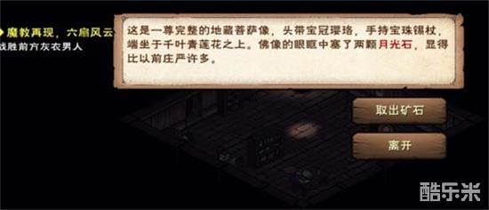 4.二楼房间和瞎子打听佛像后,子时开窗放月光石,发亮的地方搜索。