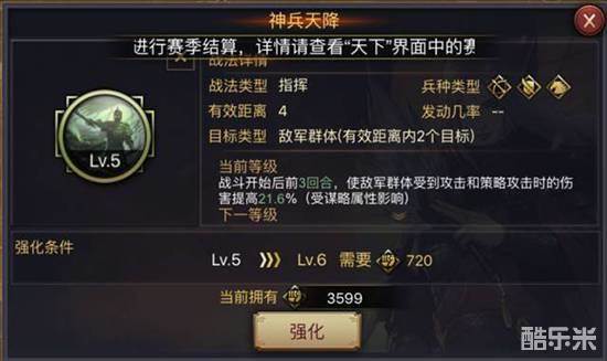 主要是以汉董卓、群貂蝉、佩戴神兵的周瑜等为代表的武将。这类武将一个很大的特点就是在于战法效果呈百分比且战法描述为“战法效果受XX属性影响”。可以说,很多玩家为了追求属性的大小,会将所有属性点全部加到与之相关的属性上。但是事实上,根据笔者的研究发现,只有避其锋芒、神兵天降等这类受属性影响百分比的指挥类技能,其加成是线性的:每5点属性点,会提升1%的加成。