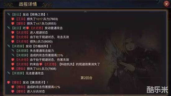 根据我之前的研究发现,物理系技能伤害率低于100%的技能,攻击力带来的收益相对是较低的;同样对于普通攻击(回马或健卒)来说,40点攻击带来的收益同样不大。恰好最近方圆技能得到了加强,加成改为受防御影响,我将赵云原本技能改换为方圆+健卒,纯攻击加点情况下,40级赵云提供了26%的伤害加成(演武,无任何加成的情况下),这个加成对于关银屏的意义如图所示: