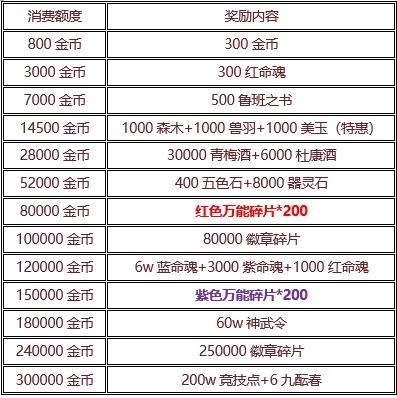 【活动内容】活动期间,游戏内累计消费达到对应金币,即可获得对应奖励;所有商品绝对超值,不信你自己看。相中哪个千万别手软!因为一犹豫也许就不知道何时能再见了。