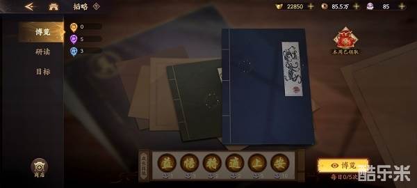2、每日资源获取主要为【博览】部分。获取到的资源可在【研读】中消耗,全局提升武将属性。玩法同时可产出【战策】,用于提升士兵的属性或技能。