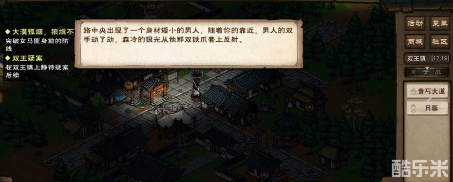 3.对话结束后,先去双王客栈找孤鸿对话,然后来到双王镇(3,15)进行后续剧情