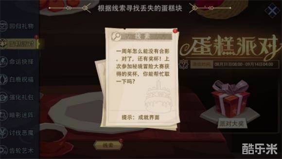 获取方式:游戏主界面点击成就-点击左下角成就奖杯,蛋糕会出现在奖杯上方,具体如下图。
