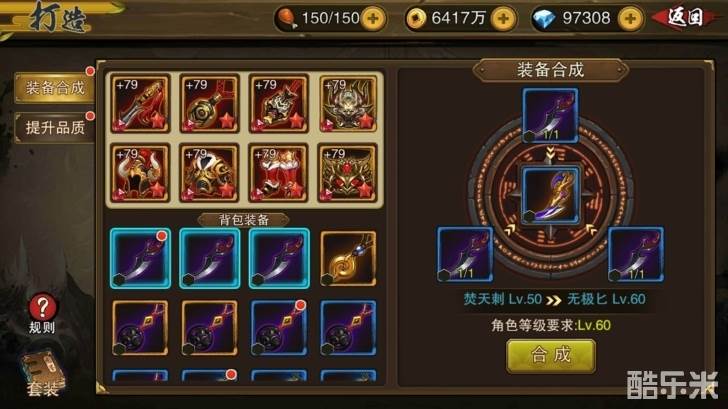 装备合成能提升装备等级上线,提升装备基础属性及成长属性。合成之后的装备,各类成长将有显著提升。