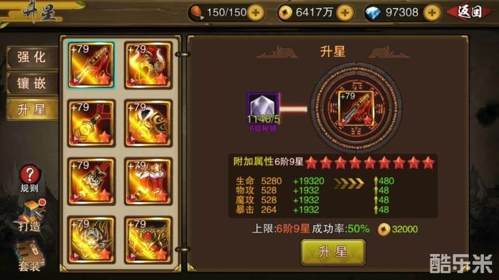 升星能直接提升装备的附加属性,提升装备能力。