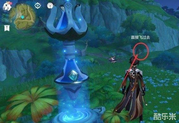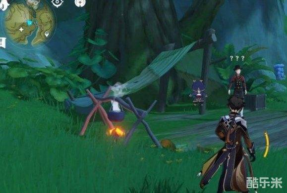 来到传送点后,朝着地图西北方向看,你就会发现在大树底下有一个小营地,飞过去。