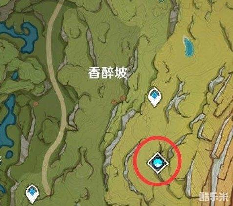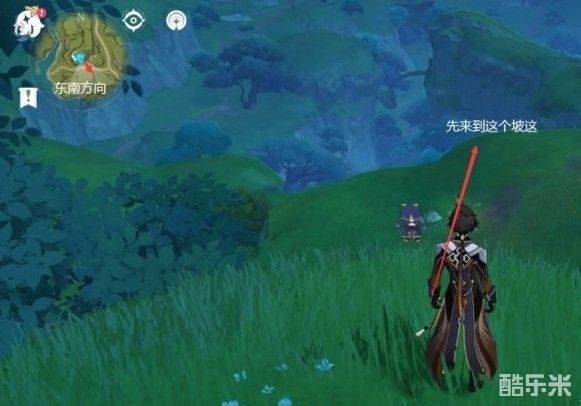 来到传送点后,朝着地图的东南方向走。走到我图中标的那个坡。