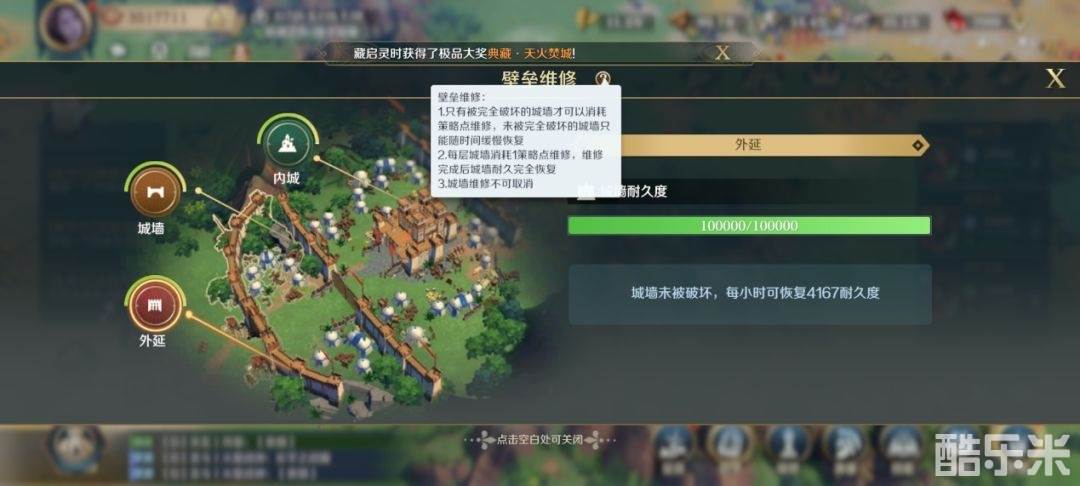 2、修建的【壁垒】由三层城墙构成,每层城墙会独立计算耐久度。当有城墙被完全破坏后,只能通过消耗策略点进行维修,被部分破坏的城墙,则只能随时间缓慢恢复耐久。