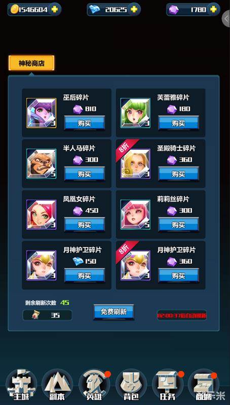 神秘商店当中消费神秘币或者钻石就可以购买英雄碎片,神秘币依靠分解不需要的英雄碎片获得,然后再在这里购买所需要的英雄碎片。是不是很方便呢。