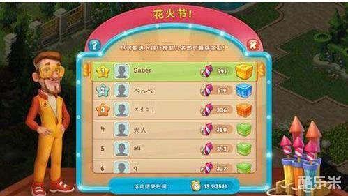 打开游戏界面,在别墅的对面街上是花火节的举办地点,每过一关获得的烟花数进入排行榜。尽量争取往前排,只要进入前十名在活动结束时,都有不同的奖励。不过活动时间只有两天,所以玩家要尽量多争取时间,多攒烟花。
