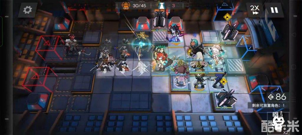依次部署芬↑推王↓夜莺↑煌↓斯卡蒂←开芬下面的灯,小羊↑,星熊←,之后微微安娜一出现直接下42秒了她。42应该可以往前一格,早点拦住另外一个boss,图中位置最后会残血需要煌和小羊来打掉。
