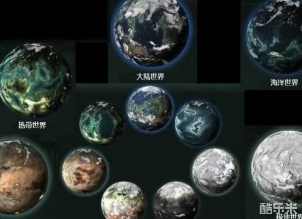 群星中,有七种最常见的宜居星球,分别是大陆世界、海洋世界、极地世界、冻土世界、旱地世界、沙漠世界、热带世界。