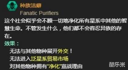 在游戏《群星》中,灭绝政体是指那些无法与其他种族外交,极端仇视异族并有着大量战争Buff的国家。灭绝政体需要玩家选择特定的国策后才会生成。