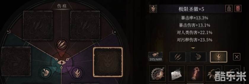 评价:黑雾装备里绝对的神装,噩梦栏里最好的输出装备,没有之一。也许你注意到了,黑雾里有不少装备的特殊效果是要在异常状态下才能触发的,所以我之前才说梅瓶和黑雾装是天生一对。梅瓶+圣徽,目前噩梦栏的最佳组合,没有之一。