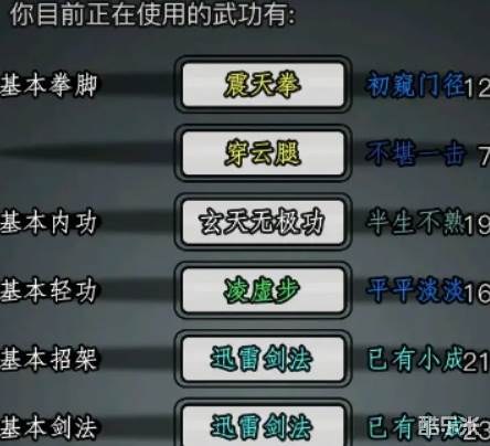 再就是少林了,小编我的评价是这个派系相当的中等,刚开始进去的时候就是学一点棍棒功夫,后面拳法互备还是没什么难度的。这里面有一个特色就是易筋经,只要是有这玩意能够随便当一个血牛,但是对应的跟上面葵花一样需要潜能太多了。而且少林里面都没有前置这种说法直接可以开始学的。