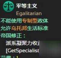 民科机制:当玩家在思潮中选择“平等主义”后,就能在人口界面中把生活标准设置为“乌托邦式生活标准”。