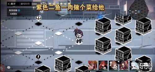 1、出发和图上感叹号来回对话。有个任务拿紫色二鱼一肉做个菜给他。黑夜模式进店买技能,炼金在边上收入队。