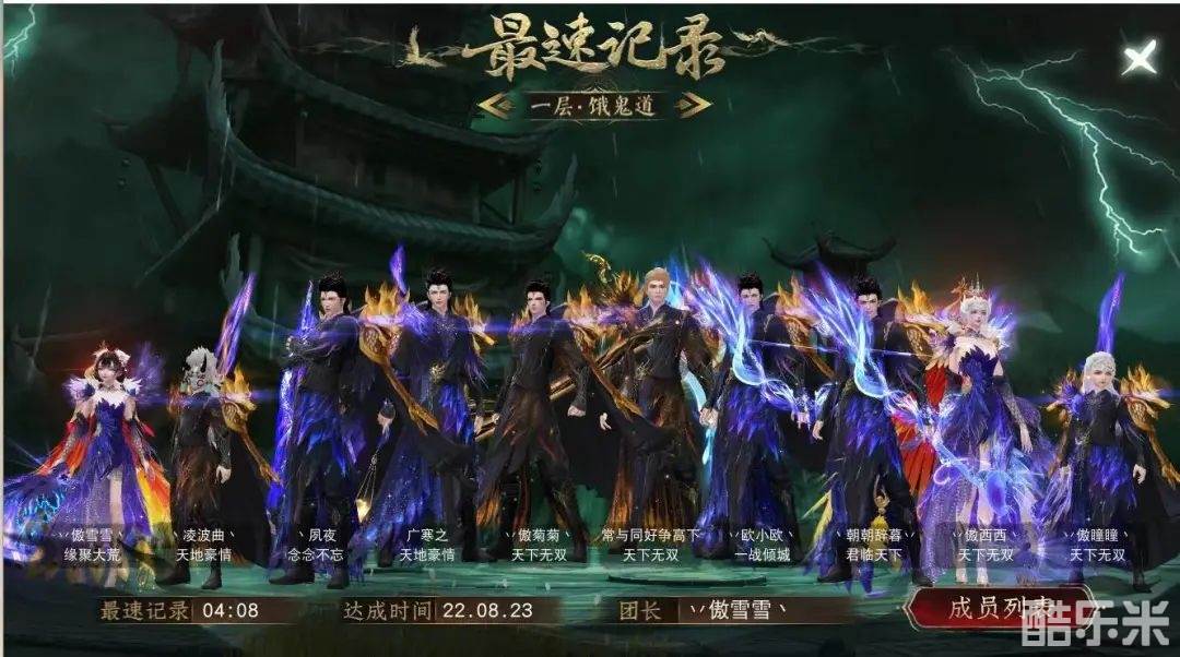 Q1:恭喜丷傲雪雪丶少侠带领的团队获得了老大区饿鬼道速通榜首!请简单介绍一下自己以及速通团的成员吧~