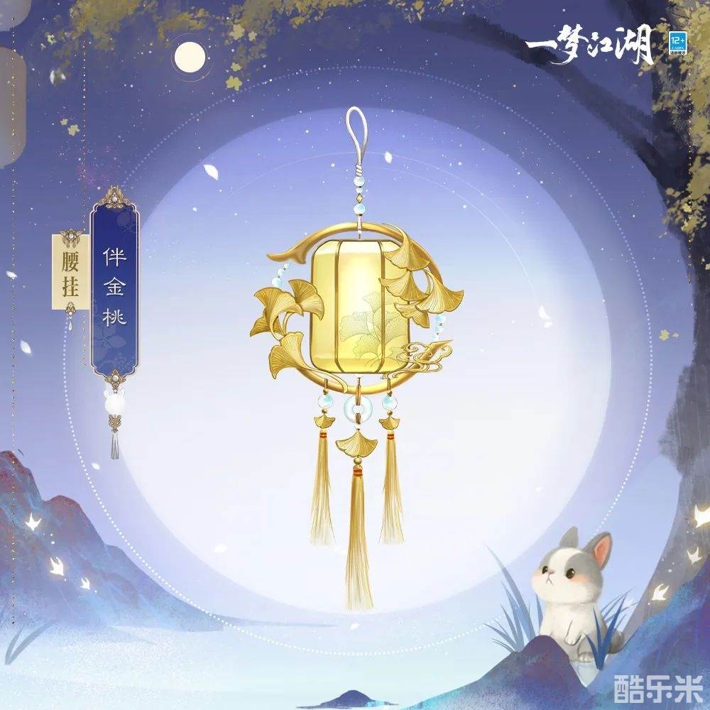 除了中秋时装之外,《一梦江湖》还为少侠们准备了精美腰挂和趣味玩具。腰挂·伴金桃是一盏小纸灯,明黄的灯笼上精心装点着扇子状的银杏叶图案,暖色的灯光从里面透出,衬得银杏愈发可爱。纸灯周围的金属环做成了银杏叶的形状,与灯上图案遥相呼应,晶莹的珠玉做装饰点缀,黄白渐变的流苏迎风飘动,十分玲珑别致~