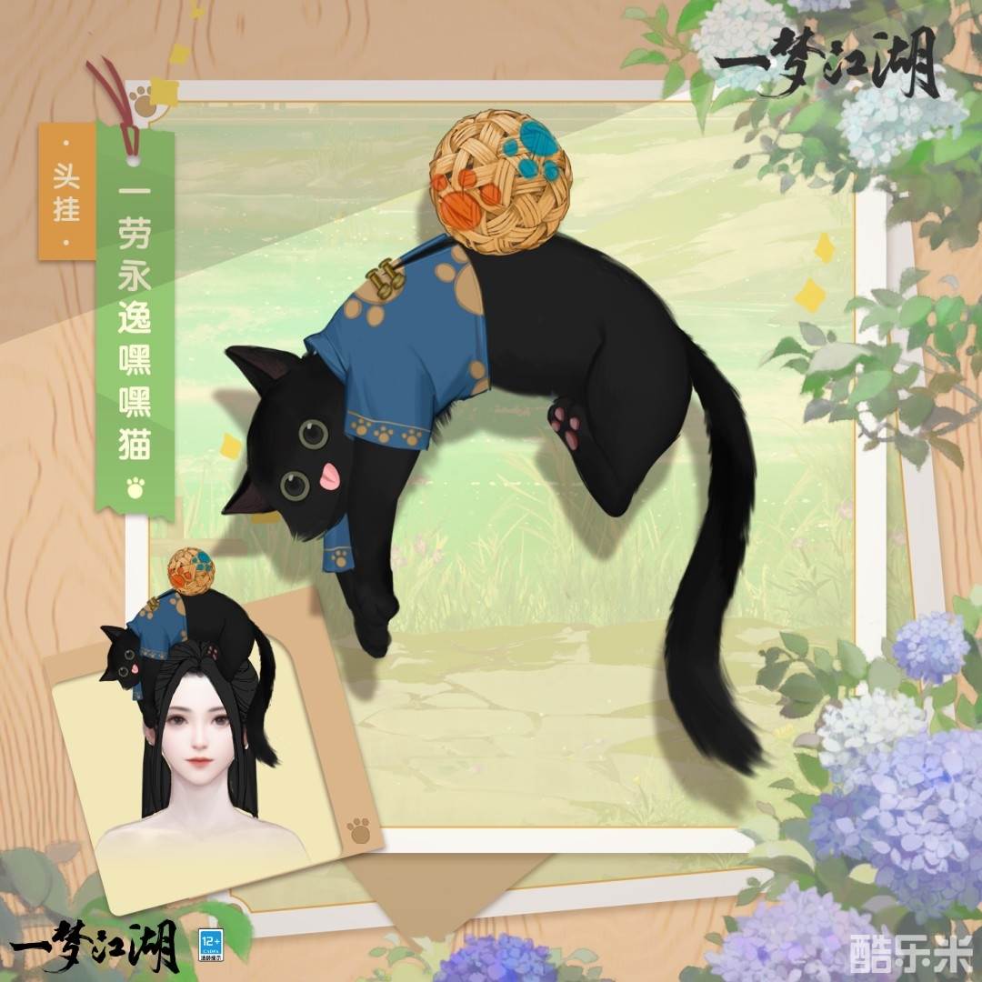 “头挂·一劳永逸嘿嘿猫”穿着青色衣裳,还有一只小藤球陪它玩,少侠们也不用担心在黑暗中找不到它啦!