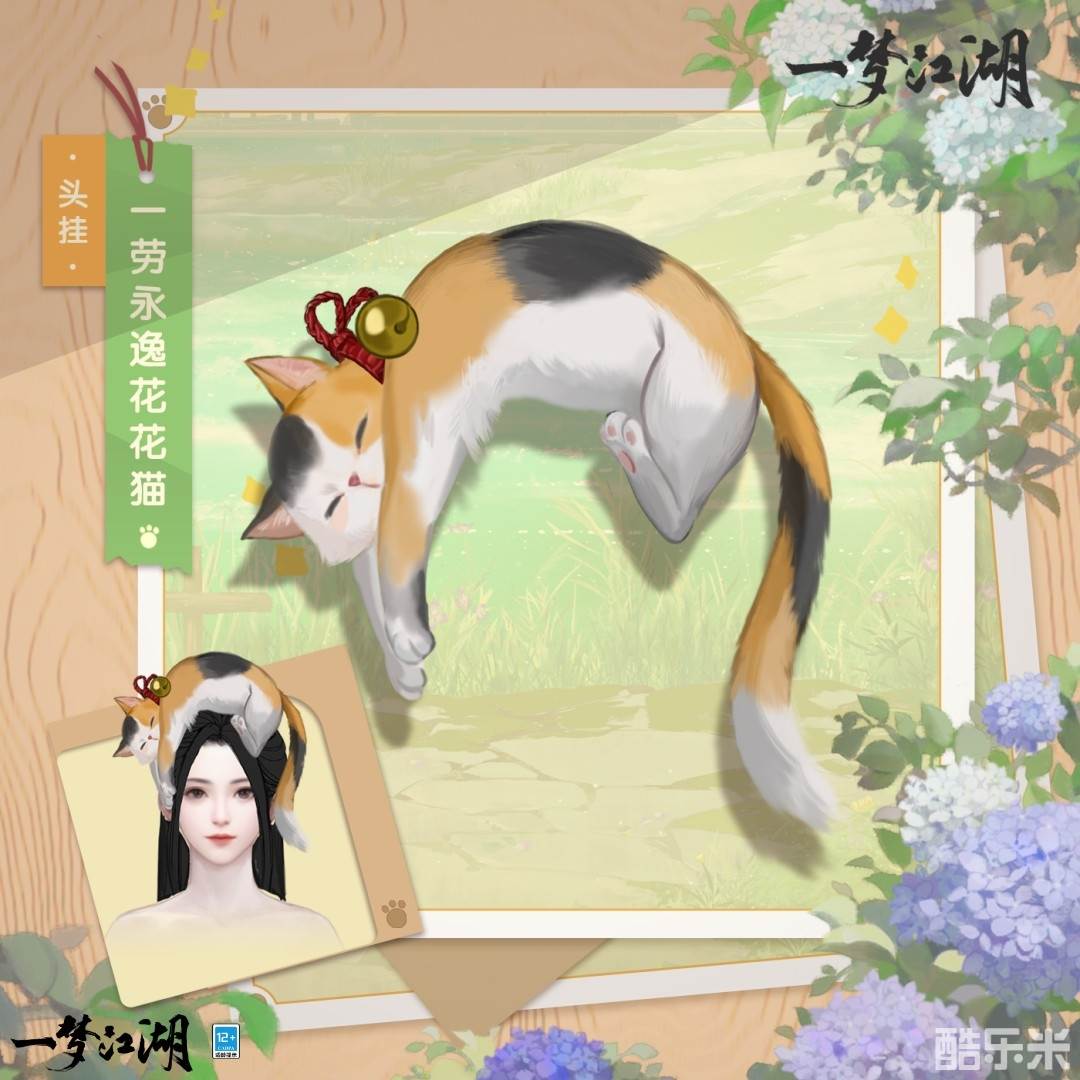 带有艺术气气质的“头挂·一劳永逸花花猫”是一只慵懒的小三花,戴着一只小脖铃慵懒地趴在少侠们头上,整颗心都要被萌化了!