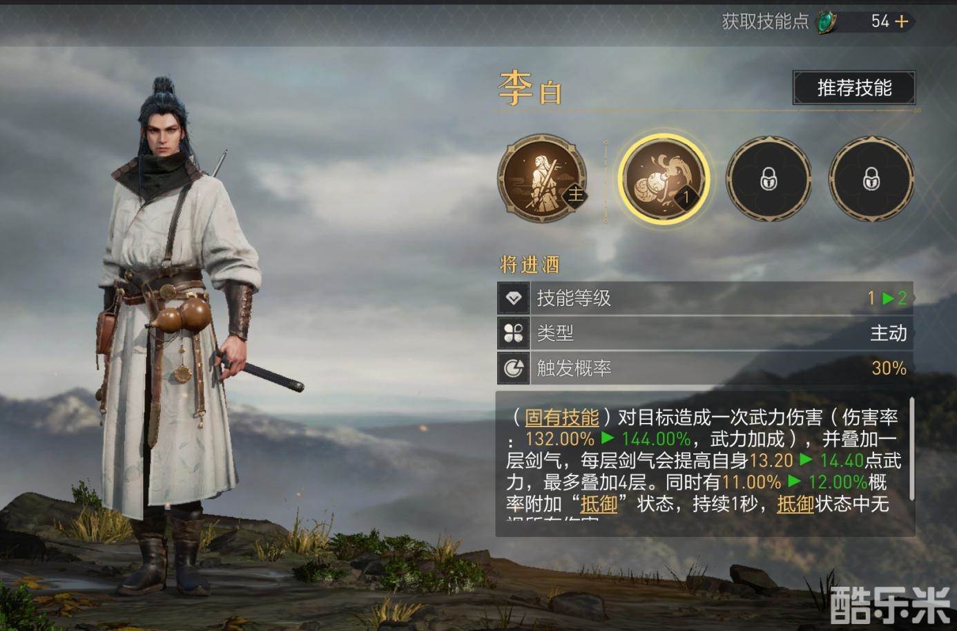 以李白作为案例,他的固有技能是240%伤害率,附带剑气和概率抵御效果。如果给他带上战争祝福,固有技能概率增加10%,等于多10%概率释放一次240%伤害率的固有技能,那我直接带一个20%概率释放的245%伤害率的天地无双斩,输出收益岂不是更高?