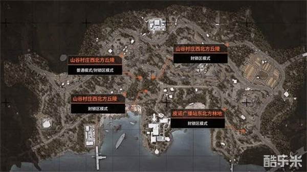 3:北山,普通模式中没有空投罐,在封锁模式中有三个,分别在通信站院内,北山酒店南部停车场,还有污水处理厂西侧院内;