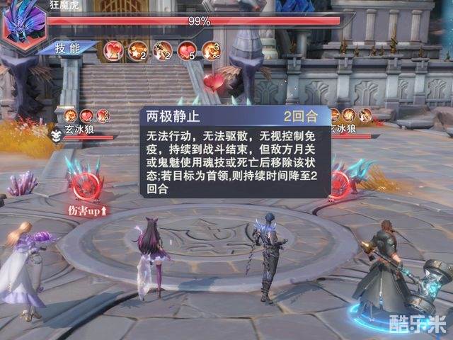 11级的伤害效果其实很一般,因为是对非首领敌人造成的伤害,所以......你真心想不到这个效果能够替代目前的主流打法或阵容12级增伤效果看似非常夸张,但如下图所示,在副本中由于boss级别的敌人只会受到2回合的【两极静止领域】,所以其增伤的持续性也是最大的问题所在13级的月关无消耗使用1技能,主要是为弥补在武魂融合技之间菊鬼都不能用技能的尴尬之处,但菊斗罗的1技能伤害......真心不敢恭维14级的先手限制效果还算是给部分大佬玩家的PVP作战提供了一定的思路,并且对于目前大行其道的一速流有一定的克制作用,但如果你不是大佬玩家这个效果跟你也没啥关系,毕竟氪满这次的转盘也是要小几千块钱的,所以绝大部分的普通玩家也就别想了