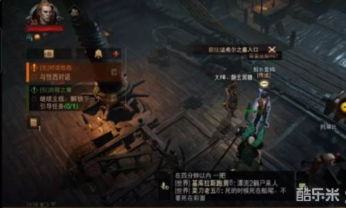 5、沿着路线就来到了法希尔之墓的传送门,点击手掌标志的位置,稍等一会就可以传送过去了,如果觉得自己不太行的话,可以组队一起通过。