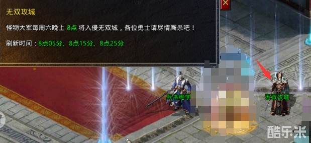 无双城活动,每周六晚上八点开启,怪物入侵无双城地图中,每隔时间段会在无双城内刷新怪物,击杀怪物有概率获得材料无双城主令。