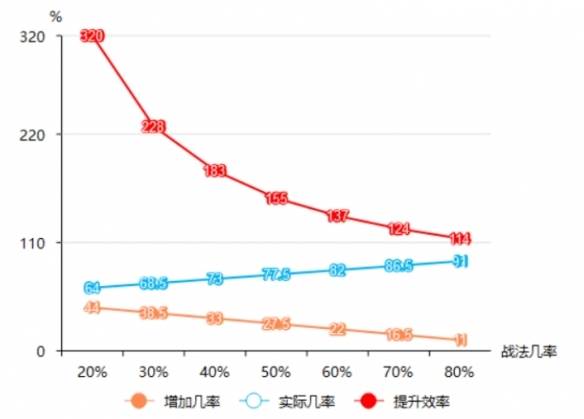 大丹将“战法几率”、“增加几率”、“实际几率”、“提升效率”直接用下图表示。