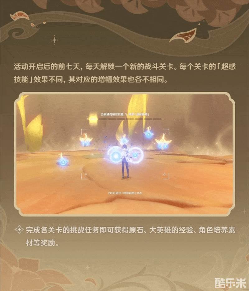 全新活动「溢神的论证]即将开启!活动期间,旅行者可在战斗挑战中通过使用溢神剂进入「时停超感]状态,捕捉敌人露出的破绽,帮助须弥学者完成课题。