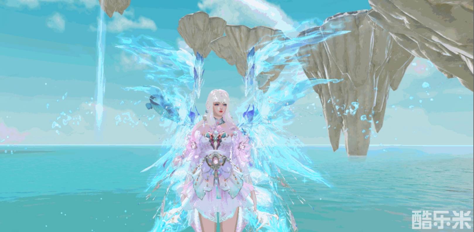 光彩夺目的【瀚海天渊】以清新的浅蓝色为主色调,仿佛要与少侠身后那蔚蓝的海面融为一体。羽翼根部上,由小巧玲珑的云贝和珍珠串联而成的坠饰伴随着徐徐清风而舞动,说不定还能听到海浪的声音呢?羽翼轻轻挥动,绚丽流光便如同水波一般从翼间倾泻而出,仍存留于初秋的热浪仿佛都被这水花击退了。少侠若换上这身羽翼,定能吸引住所有人的目光吧!